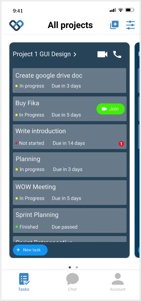 View all tasks within a project and effortlessly swipe right to access other projects.